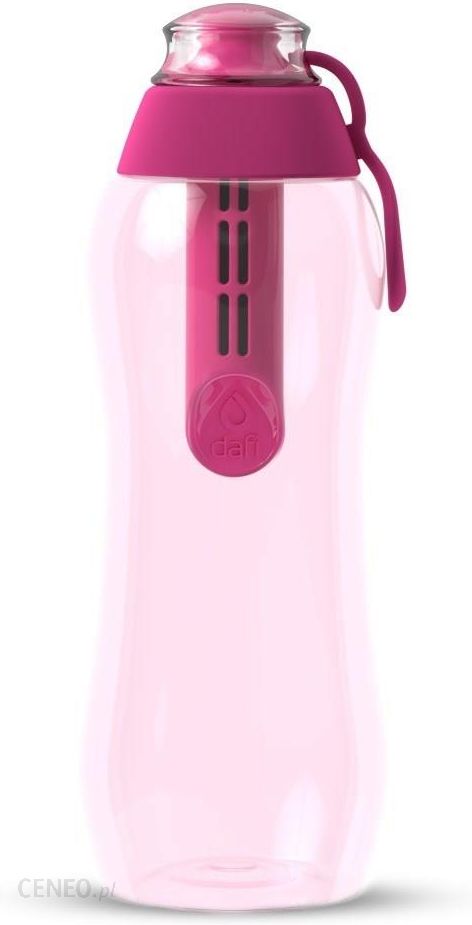 Poręczna butelka wielokrotnego użytku wyposażona jest w wymienny co miesiąc filtr węglowy (100% naturalne medium filtrujące wytwarzane z łupin orzecha kokosowego). Usuwa on z wody kranowej nieprzyjemny smak i zapach chloru. Pozostawia niezmienioną ilość minerałów naturalnie w niej występujących (głównie wapnia i magnezu), dzięki czemu woda zachowuje cenne dla zdrowia pierwiastki. Lekko podwyższa pH wody, co przekłada się na jej jakość. Wykonana jest z wytrzymałego tworzywa. Jest całkowicie pozbawiona szkodliwego Bisfenolu A i dopuszczona do kontaktu z wodą na podstawie odpowiednich atestów.Wydajność filtra: 150 l wody miesięcznie