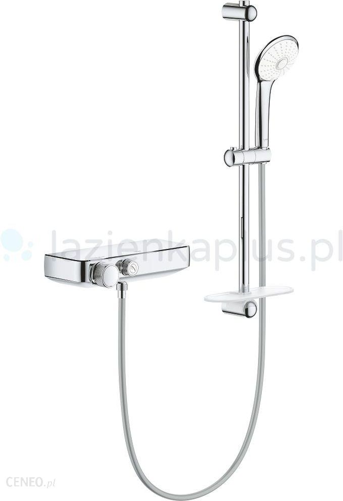 Grohe GROHE Grohtherm SmartControl – termostatyczna bateria prysznicowa z zestawem prysznicowymZestaw GROHE Grohtherm SmartControl został stworzony z myślą o Twoim komforcie. Niezależnie od tego czy masz ochotę na krótki, dodający energii prysznic czy długą i relaksującą kąpiel, pełną kontrolę nad każdym parametrem zapewnia innowacyjna technologia GROHE SmartControl. Dzięki niej, szybko i precyzyjnie ustawisz ciśnienie i temperaturę wody, płynącej z prysznica ręcznego Euphoria 110 Massage, który oferuje Ci aż 3 strumienie wody do wyboru. Aby obsługa była płynna przez lata eksploatacji, a podczas kąpieli nie zaskakiwały Cię nieprzyjemne zmiany temperatury, baterię wyposażono w termostatyczną głowicę GROHE TurboStat. Błyskawicznie wyrównuje ona skoki ciśnienia w instalacji, gwarantując komfort i bezpieczeństwo kąpieli. Zadbano również o oszczędność wody! Technologia GROHE EcoJoy pozwala zredukować jej zużycie nawet o 50%, bez pogarszania wydajności strumienia, co przekłada się na zwiększenie Twojego komfortu. Każdy element zestawu GROHE Grohtherm SmartControl pokryto dodatkowo chromowaną powłoką GROHE StarLight, która chroni powierzchnię przed zarysowaniami, jest łatwa w czyszczeniu i doskonale podkreśla elegancki design całego systemu.Zalety technologii GROHE w GROHE Grohtherm SmartControl – termostatyczna bateria prysznicowa z zestawem prysznicowymCoolTouch®bateria zawsze bezpieczna w dotyku dzięki technologii CoolTouch®DreamSpray®idealnie równy i pełny strumień prysznica, z technologią rozprowadzania wody DreamSpray®QuickFix®niezwykle łatwy i szybki system montażu GROHE QuickFix®SafeStop®bezpieczeństwo to podstawa – z blokadą SafeStop® przypadkowe zwiększenie temperatury wody powyżej 38° jest niemożliweSafeStop Plusjeszcze doskonalsza ochrona przed oparzeniami – brak możliwości zwiększenia temperatury wody powyżej 43° CSpeedClean®łatwe i szybkie usuwanie osadów wapiennych z dysz prysznica dzięki technologii SpeedClean®StarLight®efekt na lata – starannie dopracowany projekt i wytrzymałe wykończenie z chromu GROHE StarLight®TurboStat®zawsze idealna temperatura wody z najczulszym na rynku termostatem, wykonanym w technologii TurboStat®TwistFree®nie skręcający się wąż prysznicowy dzięki technologii TwistFree®Wewnętrzne kanały w słuchawce prysznicasłuchawka prysznica zawsze bezpieczna w dotyku dzięki wewnętrznym kanałom, izolującym powierzchnię od przepływu gorącej wodyDane techniczneElementy składowe – Zestawy prysznicowe main: bateria termostatyczna;zestaw prysznicowyBateriaMontaż – baterie łazienkowe: 2-otworowy ścienny, natynkowyTyp – baterie łazienkowe: dwuuchwytowaRodzaj – baterie łazienkowe: termostatycznaKolor – baterie łazienkowe: chromPrzyłącze: bezpośrednio do instalacjiRodzaj uchwytu: plastikowyRozstaw przyłączy: 150 mm +/- 15 mmIlość otworów: 2Szerokość: 305 mmPrzyłącza S: takZintegrowany zawór zwrotny przy wyjściu prysznica – baterie łazienkowe: 1/2″Zintegrowana blokada wody mieszanej – baterie łazienkowe: takSitka do zanieczyszczeń – Termostaty (dodatek do baterii): takWbudowane zawory zwrotne – baterie łazienkowe: takOgranicznik bezpieczeństwa – baterie łazienkowe: takRegulacja temperatury i ciśnienia za pomocą oddzielnych uchwytów – baterie łazienkowe: takWbudowane odcięcie wody – baterie łazienkowe: takPrysznic ręcznyNumer katalogowy do danych technicznych: 27231001Elementy składowe – Zestawy prysznicowe main: drążek prysznicowy;prysznic ręczny;półka EasyReach;wąż prysznicowyUchwyty ścienne – drążek prysznicowy: takDługość – drążek prysznicowy: 600 mmPrzestawialny odstęp pomiędzy mocowaniami ściennymi: takŚlizgacz: takObrotowy uchwyt prysznica: takZ pokrętłem: nieTechnologie – Dla węży prysznicowych – zestawy prysznicowe: StarLight®;TwistFreeDługość – wąż prysznicowy: 1750 mmMateriał – wąż prysznicowy: tworzywoŚrednica podłączeń – wąż prysznicowy: ½” x ½”Zabezpieczenie przed załamywaniem: takMateriał – półka Easy Reach: akrylMontaż – półka Easy Reach: na drążku prysznicowymNazwa produktu – Prysznic ręczny: GROHE Euphoria 110 Massage – prysznic ręczny, 3 strumienieProducent – Prysznic ręczny: GROHESeria – prysznic reczny – deszczownice i prysznice: EuphoriaNumer katalogowy – prysznic reczny – deszczownice i prysznice: 27221000Kod EAN – prysznic reczny – deszczownice i prysznice: 4005176854125Technologie – prysznic reczny – deszczownice i prysznice: DreamSpray®;SpeedClean® natrysk;SprayDimmer®;StarLight®;Wewnętrzne kanały w słuchawce prysznicaStrumienie wody – prysznic reczny – deszczownice i prysznice: Strumień Massage;Strumień Rain;Strumień Smart RainMożliwość łączenia ze sobą strumieni wody – prysznic reczny – deszczownice i prysznice: nieGwarancja – prysznic reczny – deszczownice i prysznice: 5 latMontaż – prysznic reczny – deszczownice i prysznice: do bateriiKolor – prysznic reczny – deszczownice i prysznice: chromPrzyłącze – prysznic reczny – deszczownice i prysznice: wąż prysznicowyOgranicznik przepływu strumienia – prysznic reczny – deszczownice i prysznice: nieNadaje się do podgrzewaczy przepływowych – prysznic reczny – deszczownice i prysznice: takMinimalne rekomendowane ciśnienie – prysznic reczny – deszczownice i prysznice: 1 barLiczba wejść wody – prysznic reczny – deszczownice i prysznice: 1Gwint przyłącza – prysznic reczny – deszczownice i prysznice: ½”Materiał – prysznic reczny – deszczownice i prysznice: plastikWstępnie regulowane natężenie przepływu – prysznic reczny – deszczownice i prysznice: nie dotyczyŚrednica tarczy prysznica – prysznic reczny – deszczownice i prysznice: 110 mmDługość słuchawki – prysznic reczny – deszczownicei prysznice: 188 mmTechnologie GROHEGROHE Dream