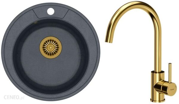 Zestaw zawiera zlewozmywak MORGAN GraniteQ czarny + bateria kuchenna INGRID + syfon z odpływem 3,5″ SteelQ PVD złoty Opis: Nowoczesne wzornictwo – dostosowane do aktualnych trendów. Zlewozmywak wykonany z GraniteQ gwarantuje najwyższą higieniczność i trwałość. Głębokie i pojemne komory zlewozmywaków Quadron to ich cecha wyróżniająca, która zapewnia duży komfort użytkowania. Zlewozmywak wyposażony jest w odpływ ze stali szlachetnej SteelQw technologii PVD w kolorze dopasowanym do pozostałych elementów co nadaje produktowi elegancki wygląd. Rozetka przelewu również wykonana jest ze stali szlachetnej SteelQw technologii PVD w kolorze dopasowanym do koloru pozostałych elementów co jeszcze bardziej podkreśla jego urodę. Obniżona strefa użytkowania to komfortowe rozwiązanie zapewniające ochronę blatu przed wodą, a ergonomiczne jego ukształtowanie pozwala utrzymać zlew w nieskazitelnej czystości. Syfon z możliwością podłączenia zmywarki lub pralki. Łatwy montaż – w komplecie zaczepy mocujące. Nowoczesne wzornictwo – dostosowane do aktualnych trendów. Elementy baterii wykonane ze stali szlachetnej SteelQ – materiału pozbawionego ołowiu co w połączeniu z technologią PVD gwarantuje najwyższą higieniczność. Wylewka obrotowa 360° – umożliwia swobodne używanie. Perlator napowietrzający ECO – zapewnia oszczędność wody nawet do 30%. Dźwignia jednouchwytowa– w łatwy i szybki sposób dostosujesz temperaturę i natężenie strumienia wody do swoich potrzeb. Głowica ceramiczna – zmniejsza możliwość powstawania kamiennych osadów i zanieczyszczeń. Mocowanie QFix – zapewnia łatwy i szybki montaż (również na blacie) oraz wysoką stabilność baterii. ZLEWOZMYWAK MORGAN 210: Minimalna podbudowa: od 40 cm Materiał: GraniteQ Kolor zlewozmywaka: Czarny metalik Kolor odpływu: Złoty Sposób montażu: Wpuszczany w blat Wymiar zlewozmywaka: 485 mm x 485 mm Wymiar komory: 370 mm x 370 mm x 200 mm Wymiary wycięcia w blacie: szablon Odpływ: zatyczkowy 3.5” Syfon: z możliwością podłączenia zmywarki lub pralki Wycięte otwory montażowe 35mm: TAK GWARANCJA: 25 LAT BATERIA KUCHENNA INGRID: Typ: stojąca, jednouchwytowa Materiał: stal szlachetna SteelQ Wykończenie/Kolor: Złoty Głowica: ceramiczna Wysokość całkowita: 354 mm Wysokość strumienia wody: 234 mm Wylewka: obrotowa 360° Zasięg wylewki: 211 mm W komplecie: aż 40cm wężyki podłączeniowe wody 3/8″, mocowanie QFix, uszczelki, instrukcja montażu Dodatkowe informacje: wylewka obrotowa 360°, perlator napowietrzający ECO – zapewnia mniejsze zużycie wody GWARANCJA: 5 LAT
