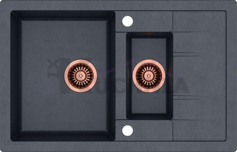 Zestaw zawiera zlewozmywak MORGAN 156 GraniteQ czarny + syfon z odpływem 3,5″ SteelQ PVD miedziany Opis: GraniteQ – zapewnia dużą twardość, trwałość i higieniczność powierzchni w zestawie stalowy odpływ SteelQ PVD w dopasowanym kolorze idealne dopasowanie kolorystyczne duża i pojemna komora – łatwość zmywania syfon z możliwością podłączenia zmywarki lub pralki łatwy montaż – w komplecie zaczepy mocujące Zlewozmywak wykonany z GraniteQ gwarantuje najwyższą higieniczność i trwałość. Zabezpieczenie przed przelaniem wody. Zlewozmywak odwracalny – komora może być zamontowana po prawej lub lewej stronie. Głębokie i pojemne komory zlewozmywaków Quadron to ich cecha wyróżniająca, która zapewnia duży komfort użytkowania. Zlewozmywak wyposażony jest w odpływ ze stali szlachetnej SteelQ w technologii PVD w kolorze dopasowanym do pozostałych elementów co nadaje produktowi elegancki wygląd. Rozetka przelewu również wykonana jest ze stali szlachetnej SteelQ w technologii PVD w kolorze dopasowanym do koloru pozostałych elementów co jeszcze bardziej podkreśla jego urodę. Obniżona strefa użytkowania to komfortowe rozwiązanie zapewniające ochronę blatu przed wodą, a ergonomiczne jego ukształtowanie pozwala utrzymać zlew w nieskazitelnej czystości. DANE TECHNICZNE: Minimalna podbudowa: od 60 cm Materiał: GraniteQ Kolor zlewozmywaka: Czarny metalik Kolor odpływu: Miedziany Sposób montażu: Wpuszczany w blat Wymiar zlewozmywaka: 780 mm x 500 mm Wymiar komory: 430 mm x 345 mm x 210mm Wymiar małej komory: 290 mm x 155 mm x 160 mm Wymiary wycięcia w blacie: 760 mm x 480 mm Odpływ: zatyczkowy 3.5” Syfon: z możliwością podłączenia zmywarki lub pralki Wycięte otwory montażowe 35mm: TAK GWARANCJA: 25 LAT