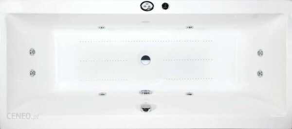 – Wymiary: 180 x 80 cm- Wysokość: 60 cm- Pojemność: 270 lSystem 3 masaż wodny i powietrznyMasaż wodny:- dysze wirujące na plecy- dysze wirujące na stopy- dysze boczne z mozliwością ustawienia kierunku strumienia wody- niezależna regulacja natężenia masażu pleców oraz masażu boków i stóp poprzez napowietrzanie- czujnik poziomu wody- zabezpieczenie przed pracą pompy bez obecności wody- odprowadzeni wody z systemu masażu wodnego, po kąpieliZaprogramowany czas kąpieli: 20minMasaż powietrzny:- dmuchawa powietrza z grzałką (300W)- odprowadzenie po kąpieli wody z systemu masażu powietrznego- automatyczn eosuszanie ciepłym powietrzem systemu powietrznego po kąpieliZaprogramowany czas kąpieli: 20min