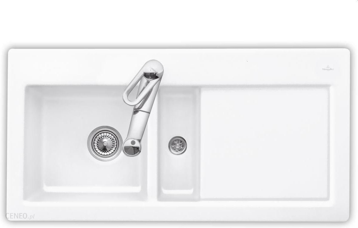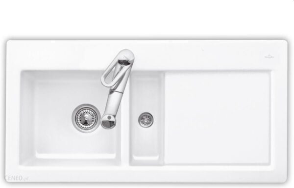Subway 60 V&B zlewozmywak ceramiczny 1000×510 mm Stone White (matowy) – 677001RWParametry techniczne: – Długość zlewozmywaka kuchennego: 1000 [mm]- Szerokość zlewozmywaka kuchennego: 510 [mm]- Minimalna podbudowa szafki: 600 [mm]- Materiał: ceramika z bezbarwną powłoką CeramicPlus® zapobiegającą osadzaniu się kamienia- Kolor: Stone White (matowy)- Sposób montażu: wpuszczany w blat- Układ komór: komora lewa- Ilość komór: 1- Średnica otworu pod baterię: 35 mm- Ociekacz: tak- Zamykanie odpływu: korek manualny (zatykany ręcznie koszyczkiem)- Kraj produkcji: Niemcy- Gwarancja producentaAkcesoria opcjonalne:- Zestaw deska+koszyk- Wycięcie jednego dodatkowego otworu 100 PLN np. na dozownik na płyn- Sitko stalowe- Do kompletowania z syfonem 137287, baterią zlewozmywakową, rozdrabniaczem odpadówCharakterystyka materiału:Ceramika jest standardowym higienicznym materiałem wykorzystywanym w kuchniach, czy szpitalach.Odporny chemicznie na typowe domowe kwasy lub zasady,Przyjazny dla środowiska w produkcji i utylizacji,Higiena – Ceramika jest bezsmakowa i bezwonna.Pielęgnacja i czyszczenie – Ceramika jest łatwa do czyszczenia.Ceramika wymaga niewiele wysiłku i czasu.Odporność – Ceramika jest bardzo odporna na wstrząsy, uderzenia i zarysowania.Solidność – ceramika jest odporna na ciepło i zimno,W zestawie plastikowa odsączarka do najmniejszej komoryOtwory do wybicia: Standardowo 1, drugi za dopłatą. Jest możliwość zamówienia produktu bez otworów.Zlewozmywak kuchenny występuje w dwóch grupach kolorystycznych Classicline oraz PremiumlineUwaga czas realizacji niektórych kolorów zamówieniowych może się wydłużyć.Villeroy&BochZlewozmywak ceramiczny, czyni pracę w kuchni jeszcze bardziej wygodną i bezproblemową.Nowoczesny wygląd nadaje przestrzeni w której jesteśmy, jeszcze więcej elegancji.